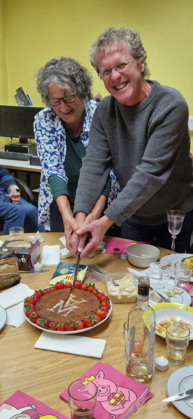 Andy and Maggie cutting the fantastic cake made by Faith Vardy from the drawing office. Containing 74 bars of dark chocolate several kilos of butter and 30 eggs, it was carefully rationed to the attendees to lessen the risk of us going into anaphylactic shock