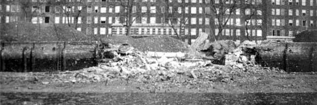 Dolphin Square, Pimlico, 16th April 1941 Breached river wall- photo by LCC’s Thames Flood Prevention Emergency Repair team